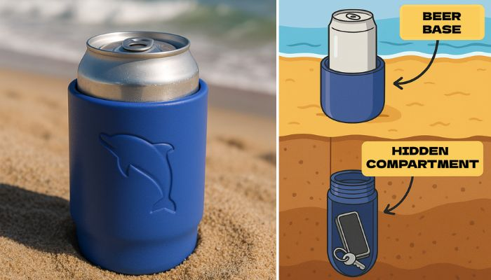 🏖️ Acessório de Praia 2 em 1: Porta-Lata + Compartimento Secreto